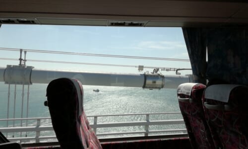 【フレーズ】Do I pay here or on the bus?《ドゥアイペイヒヤーオンナバス》【意味】料金はここで払いますか?それともバス内ですか…
